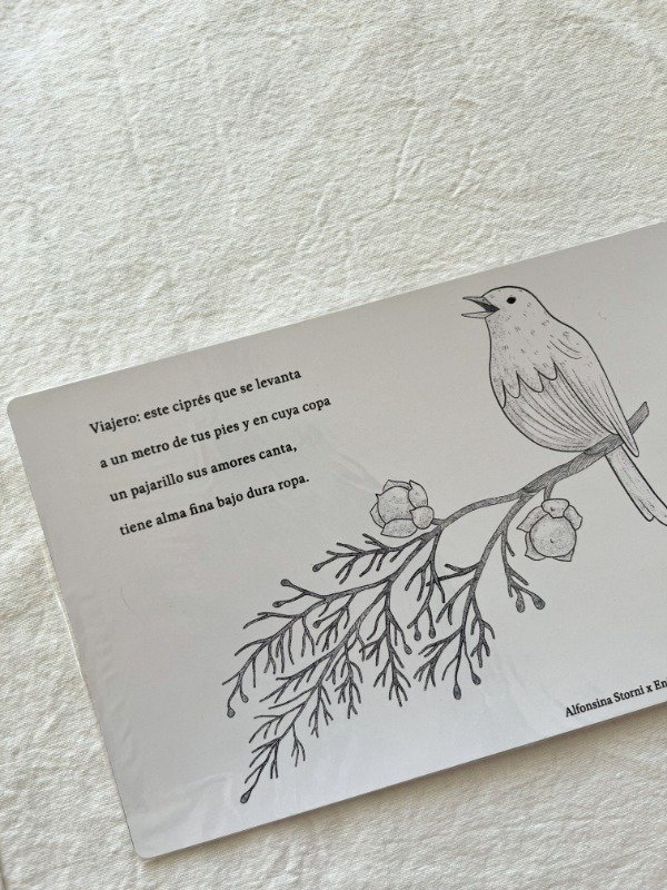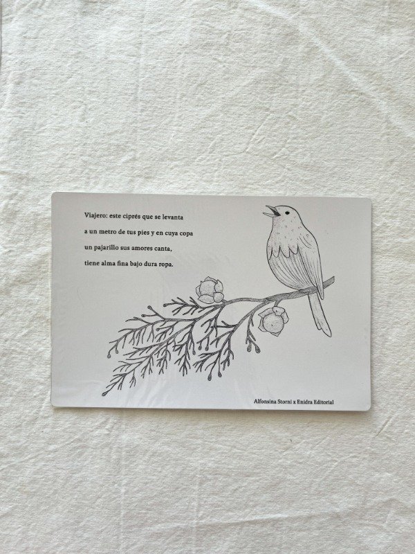 Lámina tamaño A5 con ilustración del poema La piedad del ciprés.